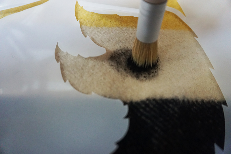 After you have finished painting, remove the stencil carefully to reveal your work.