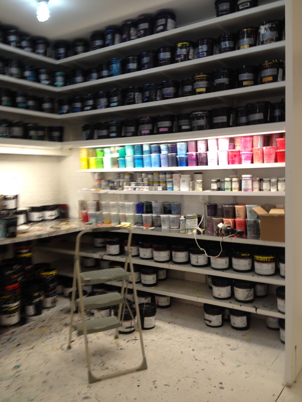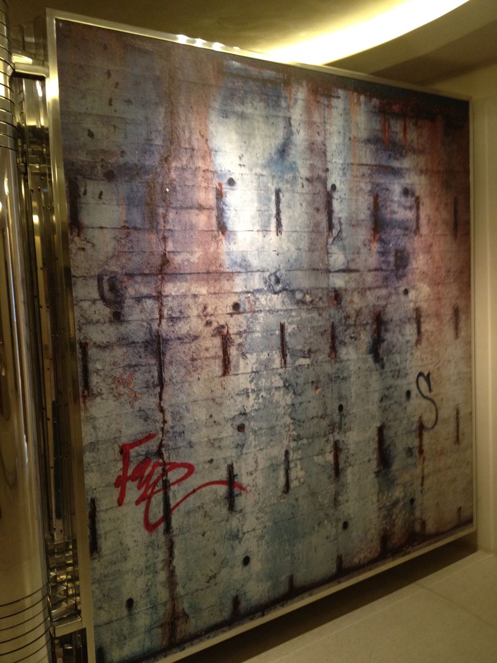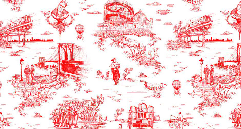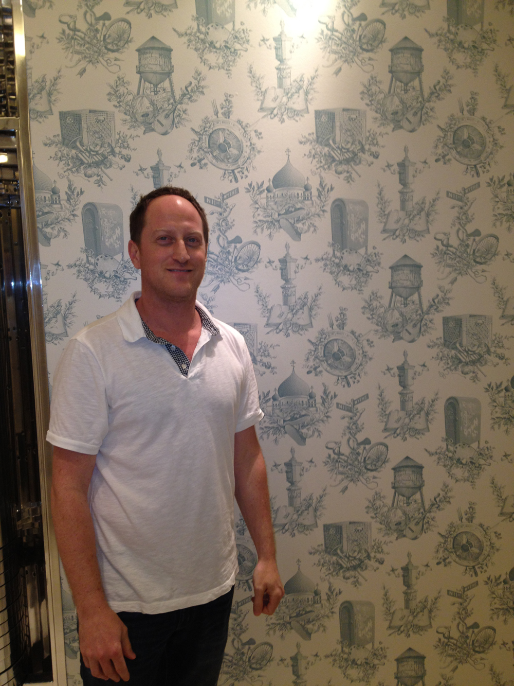 If Andy Warhol was to make a wallpaper company, Flavor Paper would be his new factory. Flavor Paper offers the most unique designs in wall paper and I just had to get a closer look at the place. I contacted Jon Sherman, the humble owner and designer and he was super generous with his time. The Cobble Hill business is in a modernized 4 story building that was once a parking garage. We met in the showroom on the second floor where you can view very large samples on a hanging system similar to how large rugs hang in some stores. Jon told me that years ago a wallpaper company was going under and the owner was literally burning all his machinery and stock. Jon stepped in and bought the business, learned the wallpaper silk screening process and continued the legacy. We flipped through all the designs and I flipped out over so many of them! Repeat bananas on metallic foil?! Realistic wall murals of graffiti tagged concrete walls! But by far my favorite are the clever takes on traditional toile. So rather than seeing a repeat of oh I don’t know a couple in powdered wigs and a pile of fruits on a platter, instead in their Wythe Toile you see Brooklyn imagery of water towers, street signs, and a Williamsburg iconic church (Wythe is a street name in Williamsburg). I saw this beautiful paper applied in the rooms at the Wythe Hotel for which Dan Funderburgh created it for.  There’s another Brooklyn Toile, commisioned by Mike Diamond of the Beastie Boys, with images of Biggie, the Cyclone at Coney Island, and the Brooklyn Bridge (design by Revolver New York. I want!