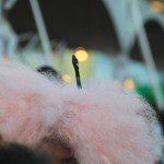 - Pink afro with fist pick