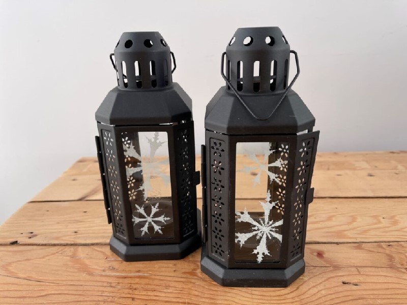This DIY is my favorite one of the bunch this year and thank you IKEA for having these “Borrby” lanterns in stock! I purchased two of these lanterns in black and what’s nice is they stand about 17” tall, a nice bold statement!