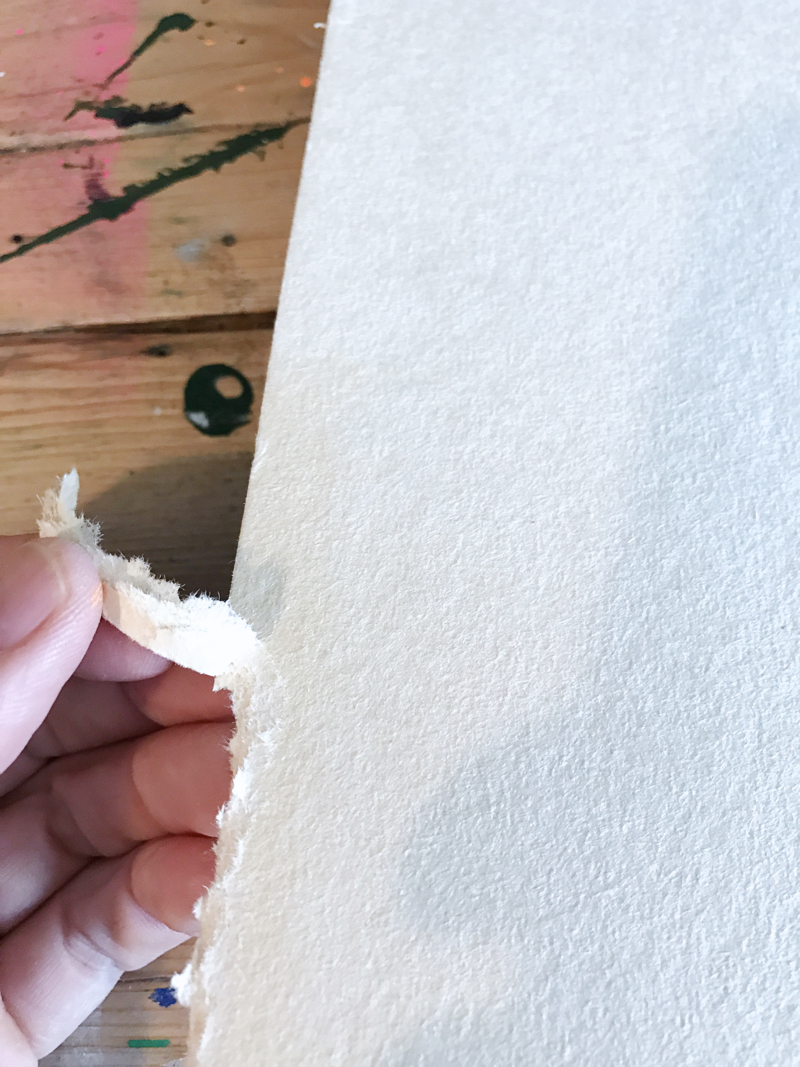 First, we prepped our paper by ripping off the sides to give a distressed, vintage look.