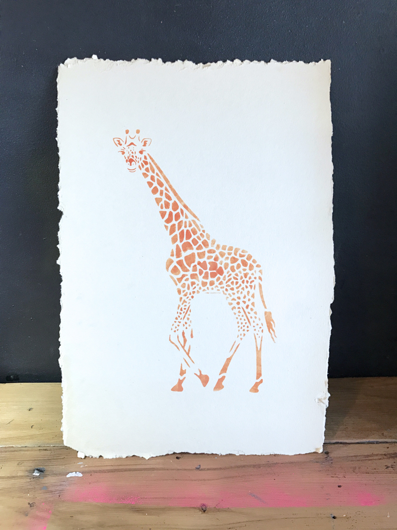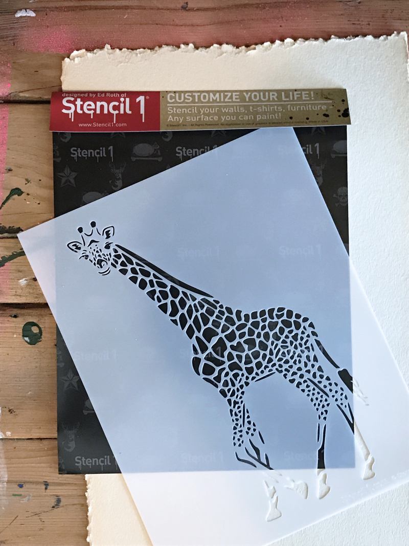 Things you will need: Stencil1 Giraffe stencil, paper, Stencil1 Sprayers, and a cosmetic sponge