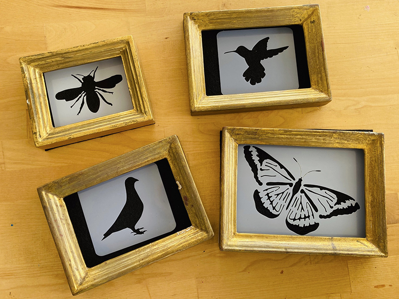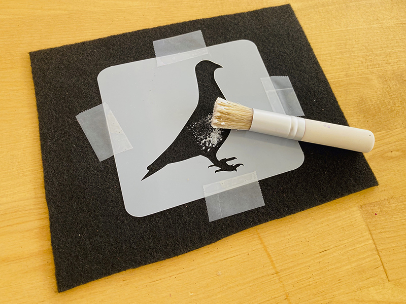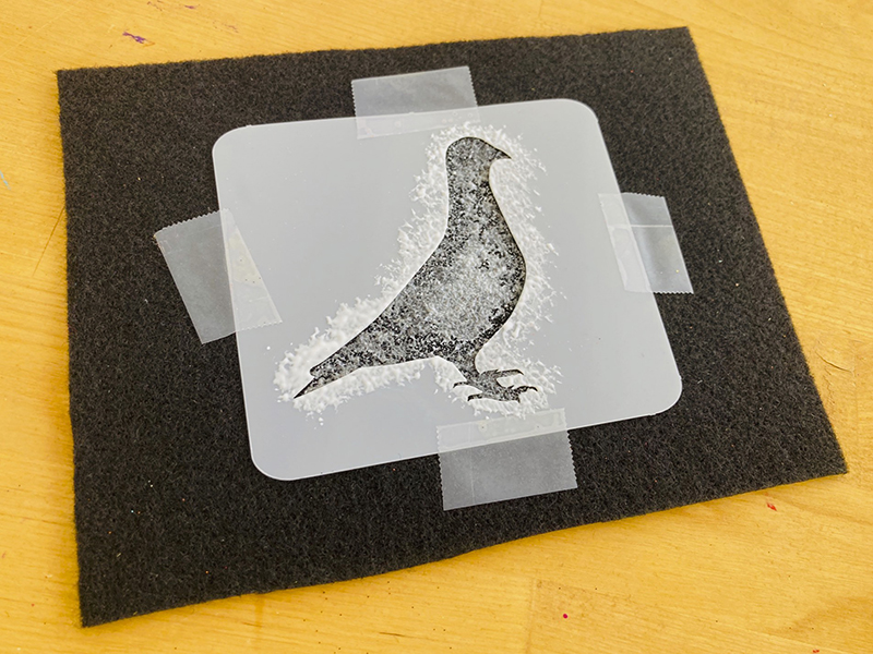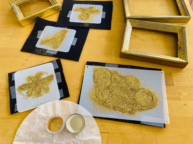 Cut pieces of felt to fit the frames and arrange your stencil positioning.