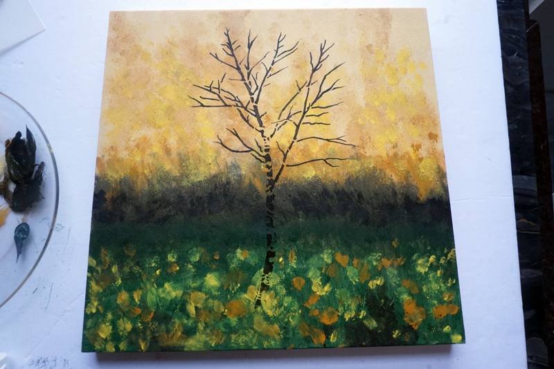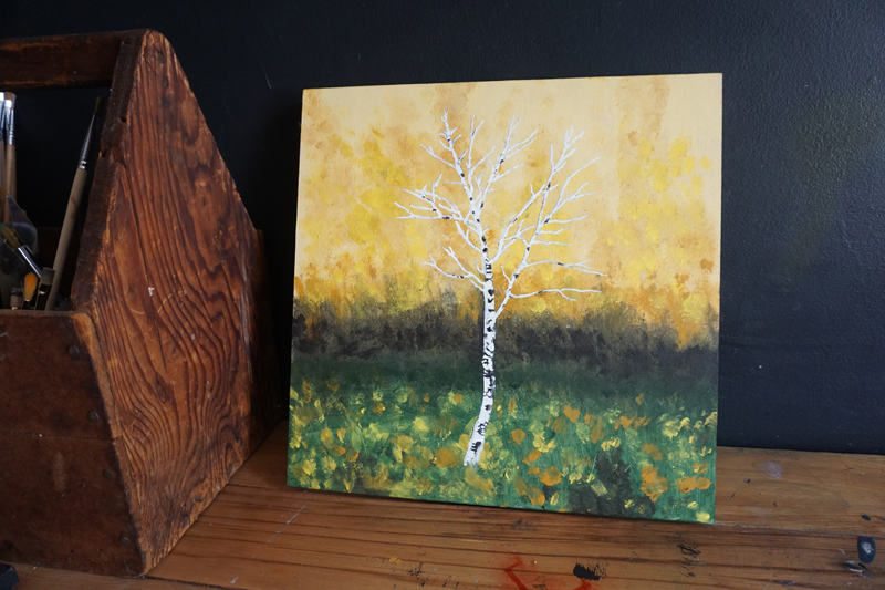 We used a few earthy colors for an Autumn feel. For inspiration you can search online for images of birch tree paintings as well.