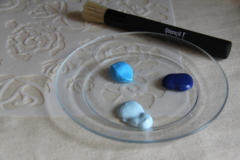 Step 1: Choose your paint. We decided to use different blues but you can use one color or 20 different colors. Get creative! Think about where you’ll use the pillow and the colors in that room. This could be a great accent pillow on your sofa or a subtle pattern on your bed!