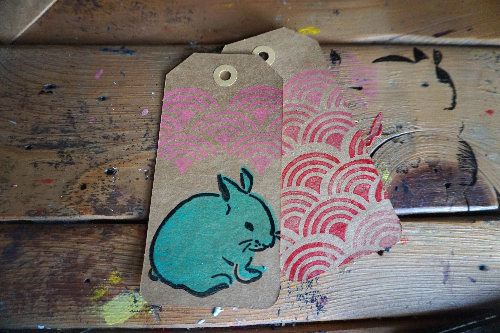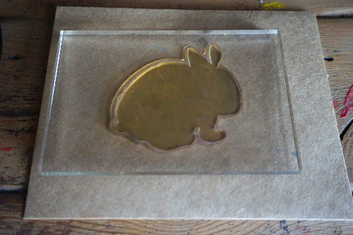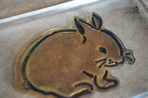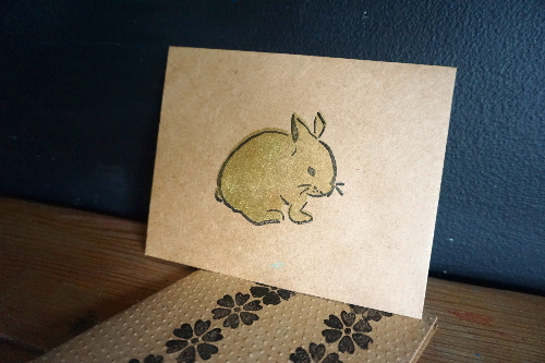 Using the second layer of the bunny stamp, dip your stamp into a contrasting ink pad and stamp right above the first layer.