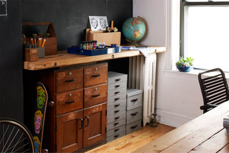 My old office was all chalkboard walls. This was great for a home office as I could make reminders, lists, and I even had a calendar on the wall that I could constantly update. See the Container Store makeover and the featured chalkboard walls here