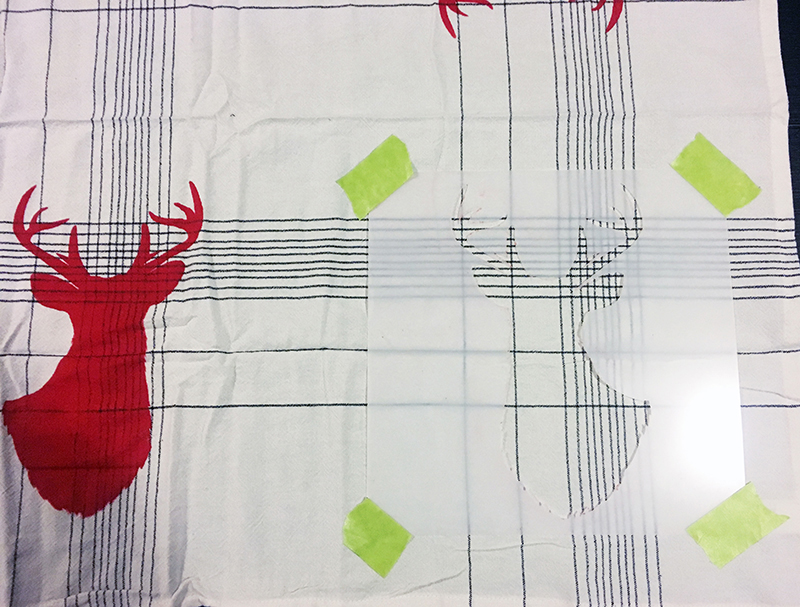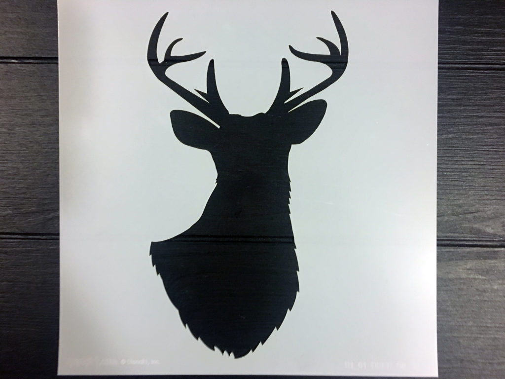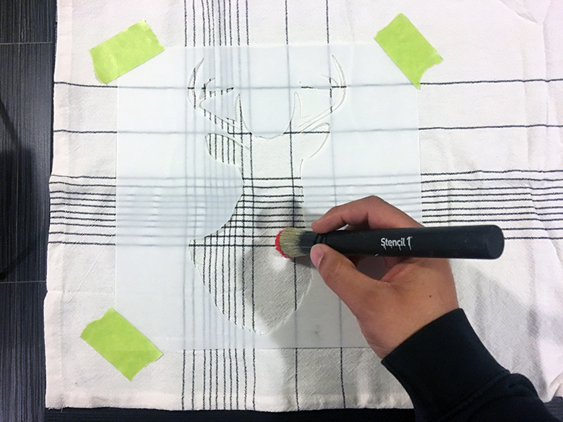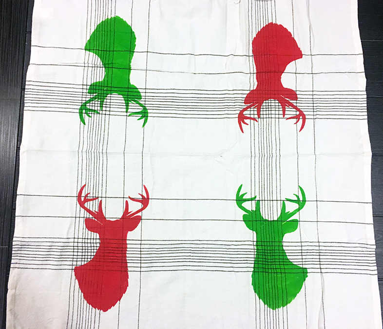 Antlered Deer Silhouette Stencil Small Applied on Kitchen Towel