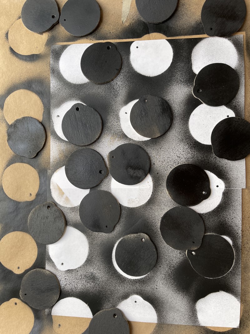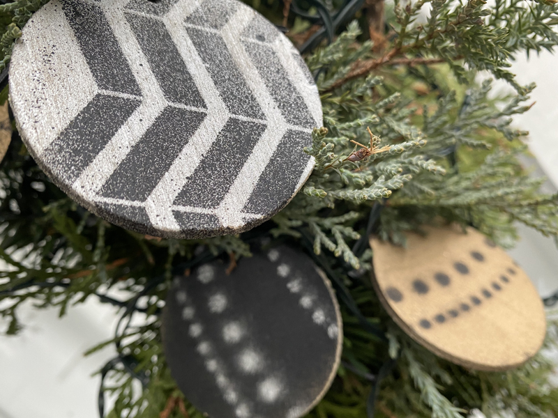 These little wood circular ornaments are so affordable and I was not sure where they would get used but I made about 24 of them.