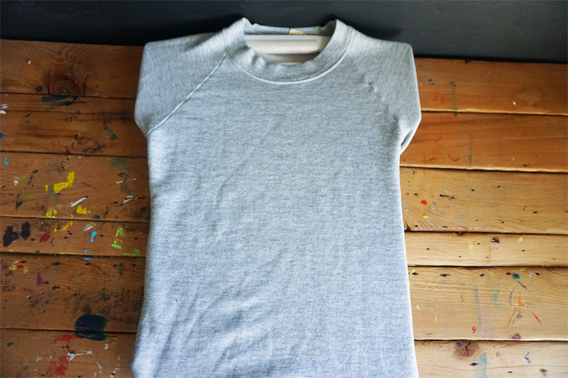 Step 1: Put a piece of cardboard inside the sweater to hold its shape, and to prevent the sweater from moving around during stenciling. Fold the arms behind the sweater to get them out of the way.