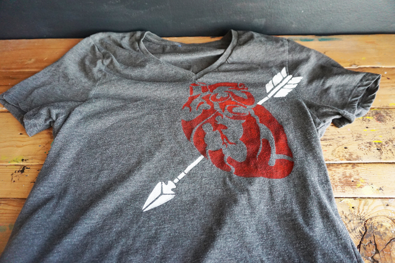 Want more of a statement on your old T-shirt? Try using the Heart stencil, combined with the Arrows stencil to create this unique design. Simply changing the color of paint can give this project a whole new look, allowing you the further personalize your shirt.