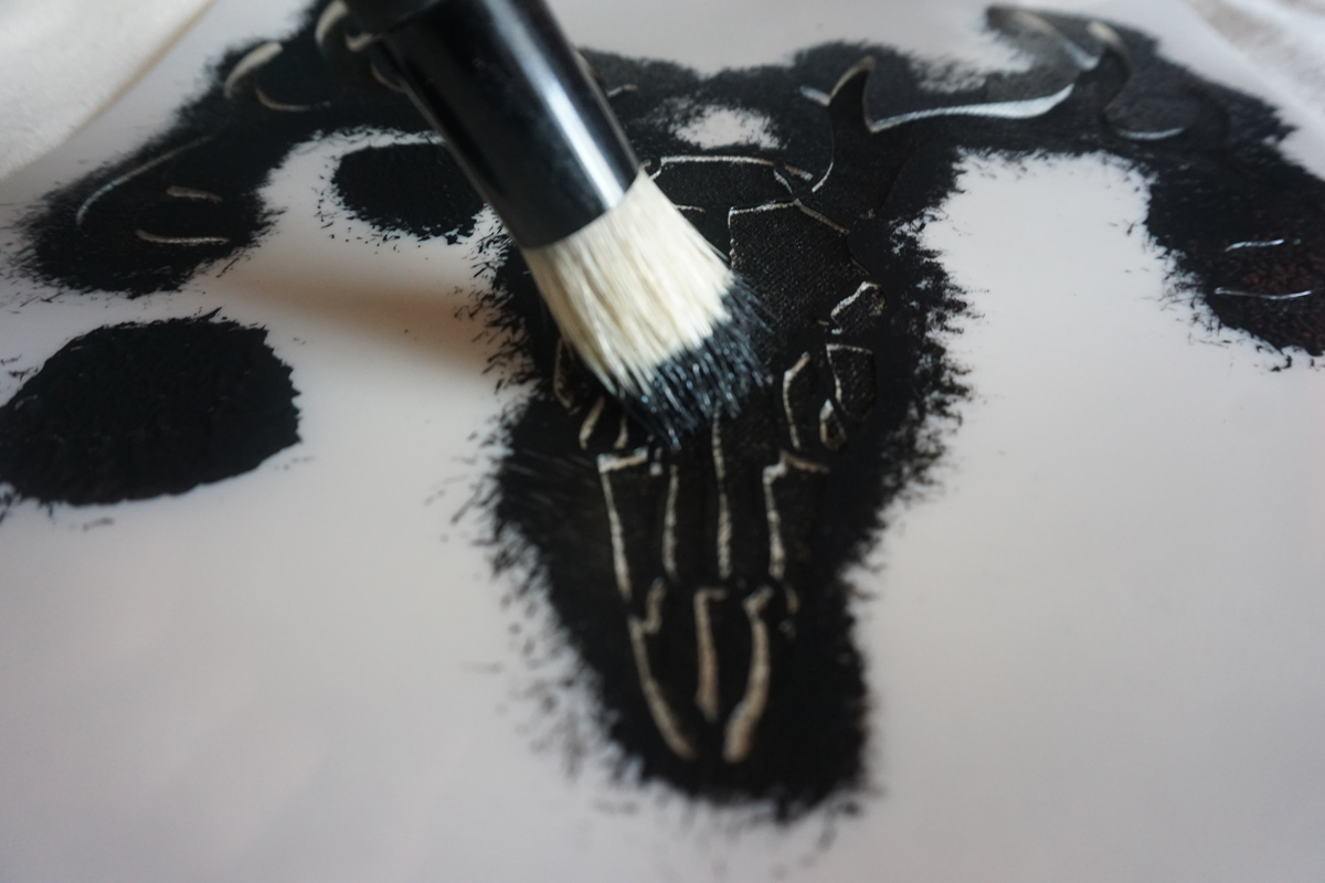 Load up your brush with your paint and paint away! Be sure to wipe any excess paint on a paper towel or plate to make sure paint doesn’t bleed underneath the stencil.