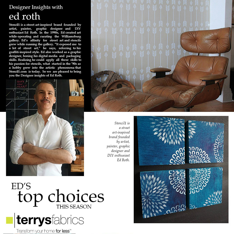 Stencil1’s very own Ed Roth recently did a Designer Insights interview with Terrys Fabrics! Find out what inspires Ed Roth and how he made Stencil1 what it is today, along with some of his top choices in furniture this season. Check out the full interview now!