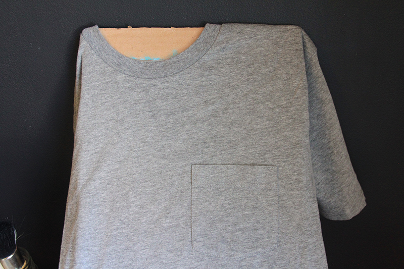Step 1: Slip the cardboard insert inside the shirt. This will give you a firm surface to stencil on and will prevent paint from bleeding onto the back of the t-shirt.
