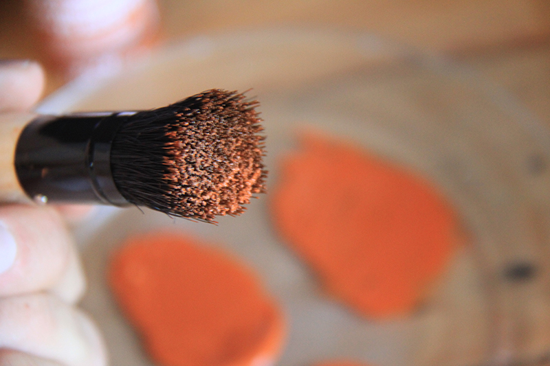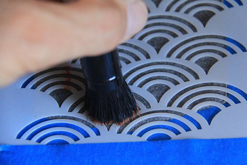 Step 5: Dip your brush in the paint gently. Stenciling is a dry brush technique, which means you do not need a lot of paint on your brush. If you want the color to be more saturated, you can apply multiple layers.