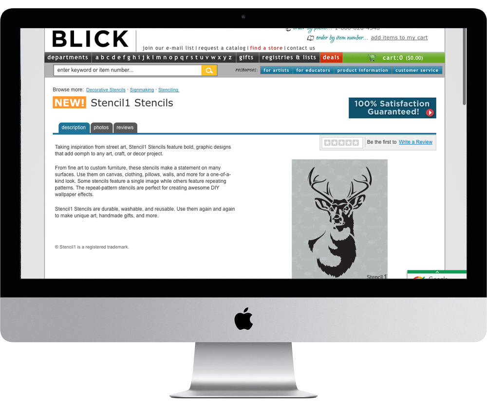 In 2004, I started Stencil1. I had this idea to offer graffiti stencils so I designed 50, built a barebones website, and launched it. I soon got a call from a buyer at Blick Art Materials saying she wanted to carry the stencils. I explained I just stuff these in envelopes from home. She replied “Figure out your packaging, we want them”. I did and Blick was the first store to carry my line. They carry an arrangement of designs in their stores and now they have offered a select amount on their website as well. I say all this to hopefully inspire the start-up entrepreneur. My advice is learn as you go, businesses grow and evolve as do dreamers. The selection of designs offered at Blick can be found here: