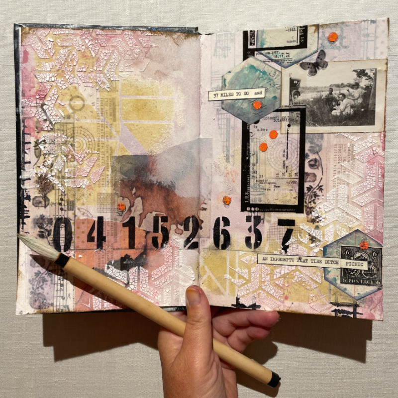 Tracy Hickman, aka @anonymous.palette has created numerous projects using Stencil1 stencils and we have highlighted her beautiful work below. We are so honored to work with Tracy, her eye for color and balance is so inspiring and we hope her work encourages our viewer to try new techniques in mixed media. Tracy also works as an interior designer, has opened a distillery, and loves dogs! See all her work for Stencil1 below and be sure to follow her on social media at @anonymous.palette