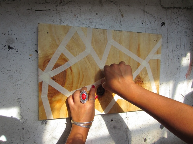 Lastly, decide where you want your hooks to go. You can use a grid system, make a pattern or place them randomly. I decided to place my hooks at the corners of the shapes I made my design with. Keep in mind your jewelry when placing the hooks, put some higher up for long necklaces and some further down for earrings or rings. Tip: Use a nail and hammer to make a small hole where you are placing the hook to make screwing the hook in a lot easier! Once you’re done, pick a home for your awesome, new jewelry stand and organize away! Don’t forget to share pictures of what your jewelry stand looks like with @stencil1