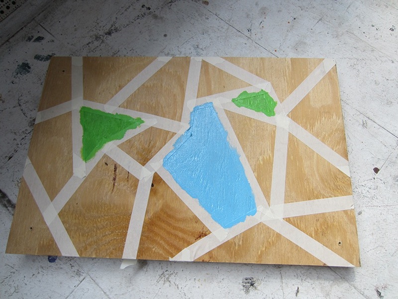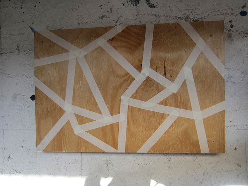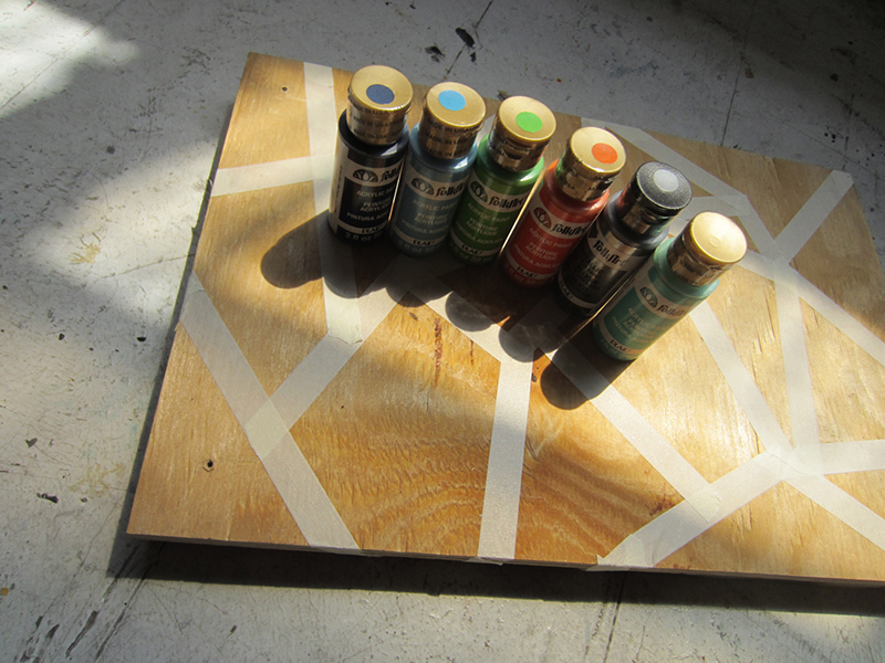 I wanted to go with a colorful, geometric theme that was easy to paint and avoided a mess. I used tape to make a design that wrapped around the entire stand. You can make a pattern similar to mine or challenge yourself a little more by throwing in some curvy lines here and there.