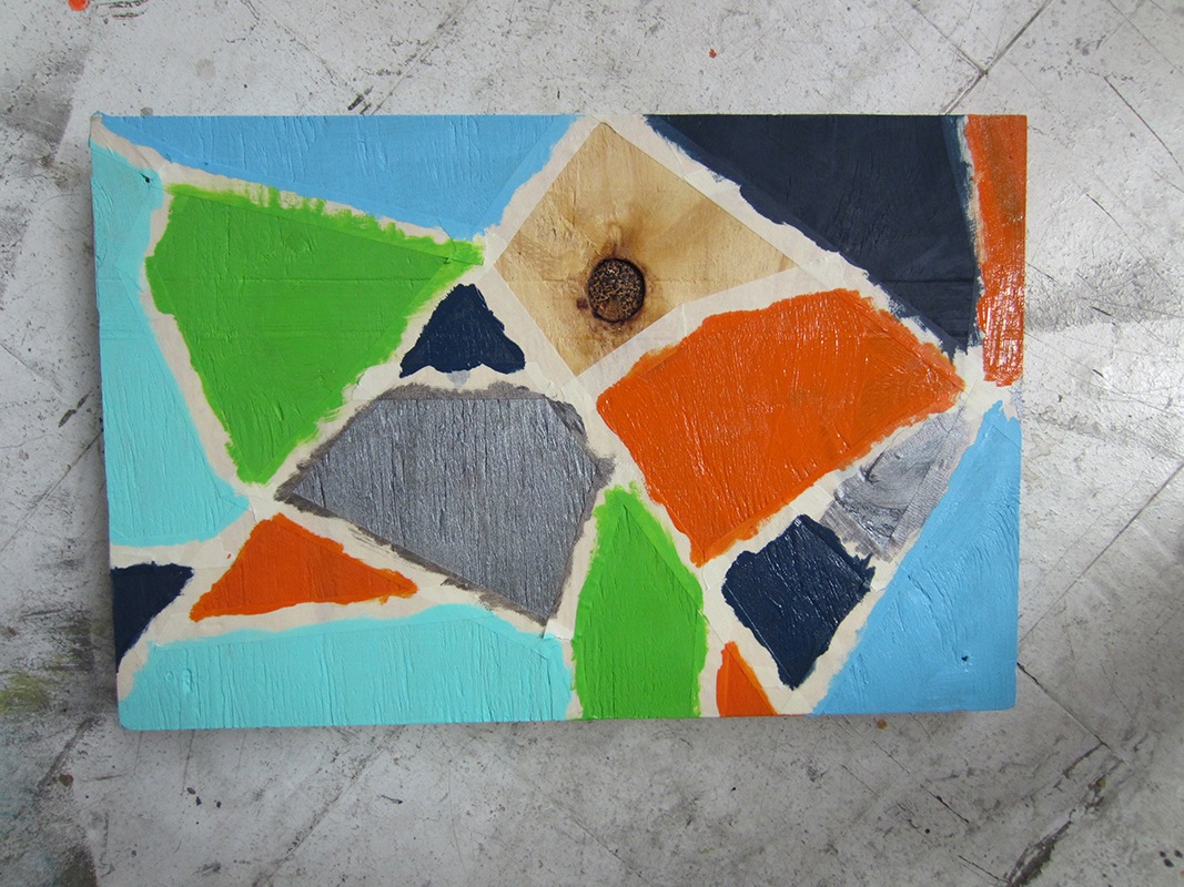 Next, I began painting. You’ll need some paint and a couple brushes. A cup of water and a rag will help you keep your brushes clean. I used Folk Art paint and stuck to 6 colors.