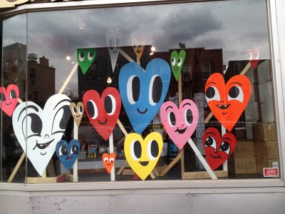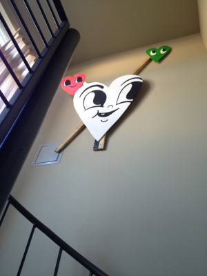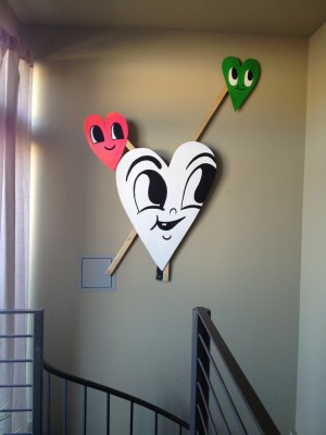 I went in and the gal behind the counter gave me the artists info. CHRIS UPHUES.  I emailed Chris to see if these hearts I have admired for years were for sale.  He said yes and the display was scheduled to come down this week. I made my way over that weekend and had the nerve-racking choice to make of which hearts to choose within my budget (I collect affordable street art). I found myself feeling sorry for the hearts I couldn’t adopt, I mean, purchase that evening.. oh the power of art and those cute-sy damn heart faces! If you too want to make these hard choices, Chris creates art and products based on his artwork, all for view and sale on his website http://chrisuphues.com/