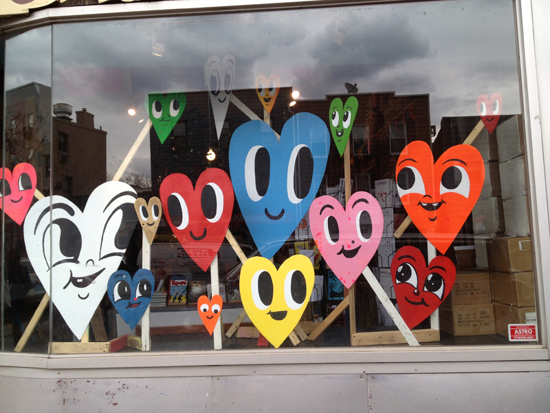 Well, I never knew who created them until last week I walked by a graphic novel bookstore on Metropolitan Avenue in Williamsburg called Desert Island. Talk about DIY, they always have the best window displays. This is what I saw in the window: