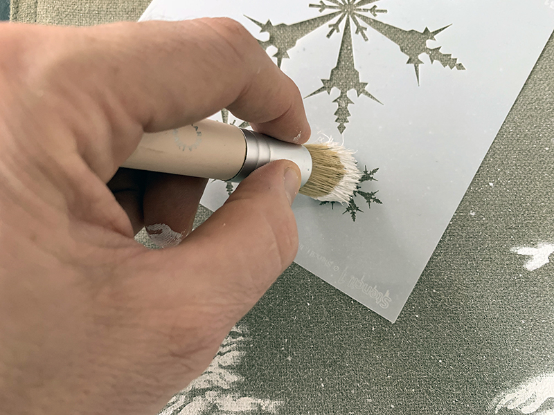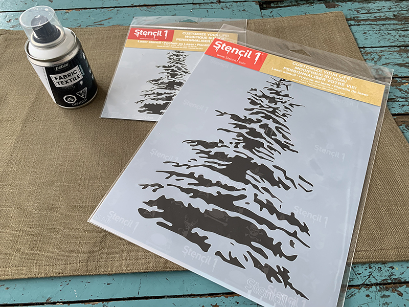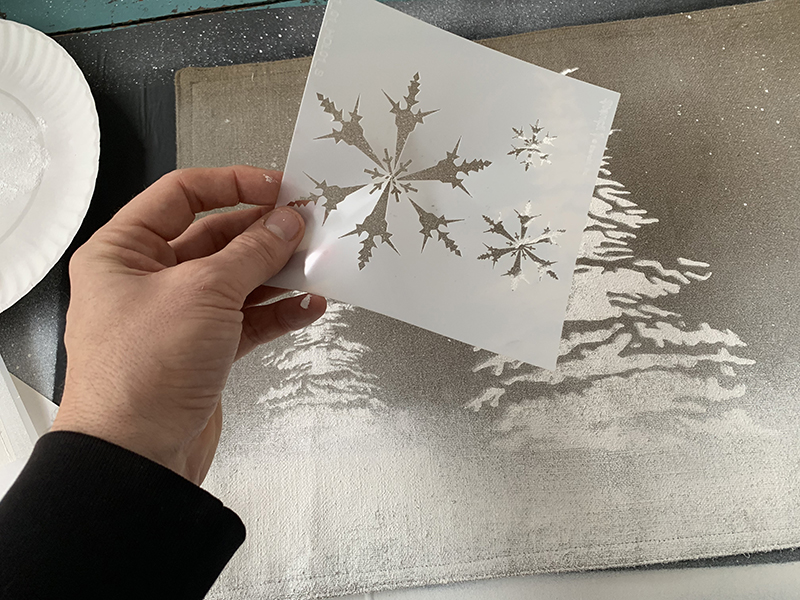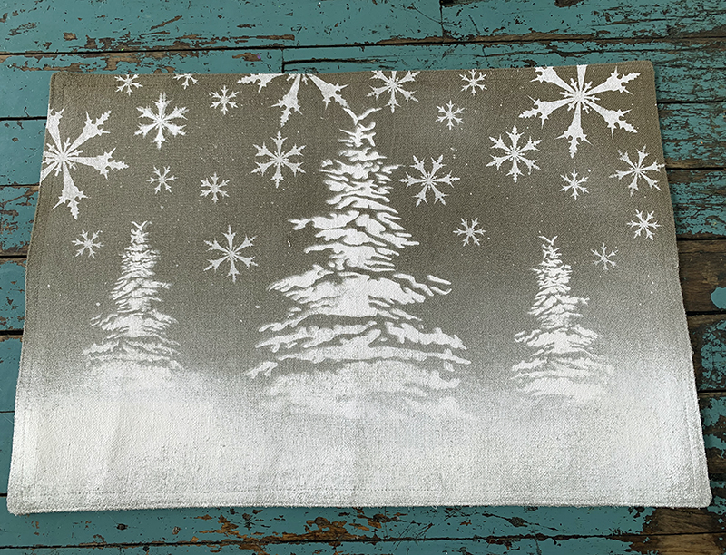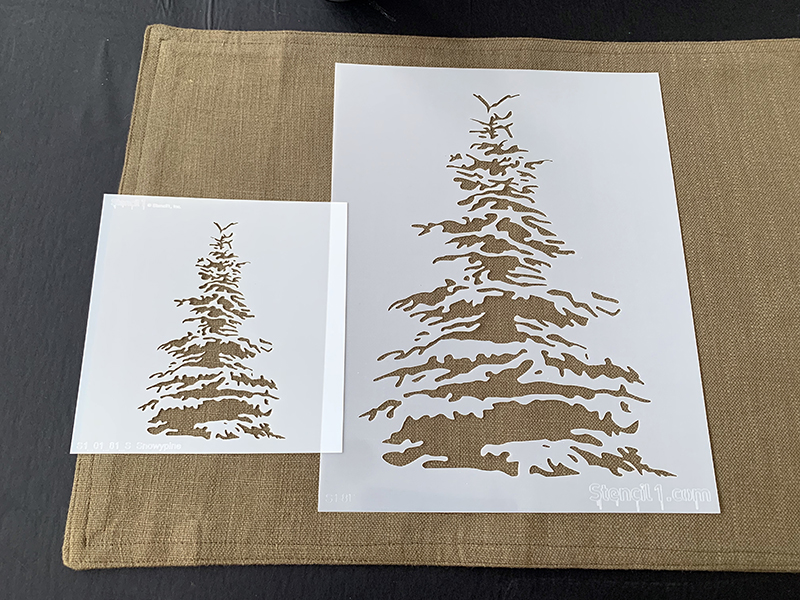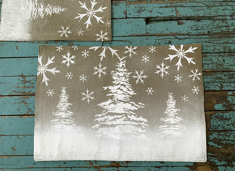 For this craft, I used the Snowy Pine Tree stencil, both the 5.75″ x 6″ and 8.5″ x 11″, to add perspective to the placemats
