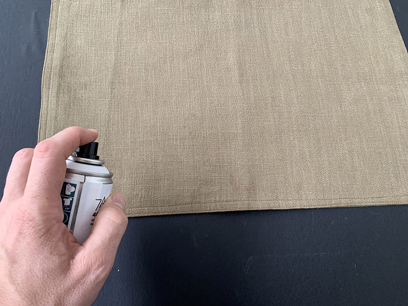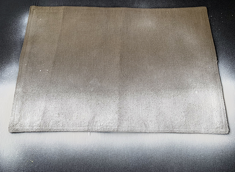 Begin spraying the bottom of the placemat to create your snowy scene.