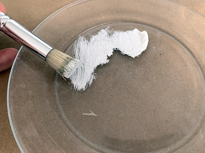 Use a plate to place your paint and remember to use a small paint of paint with your brush,.