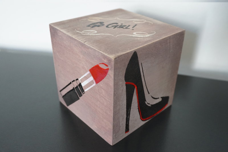 We placed the Blues Singer stencil on the side of the crate, she seems to be happy to fit right there! Stencil in the open design areas. Do NOT water down your stencil paint, we use a shinier black paint.
