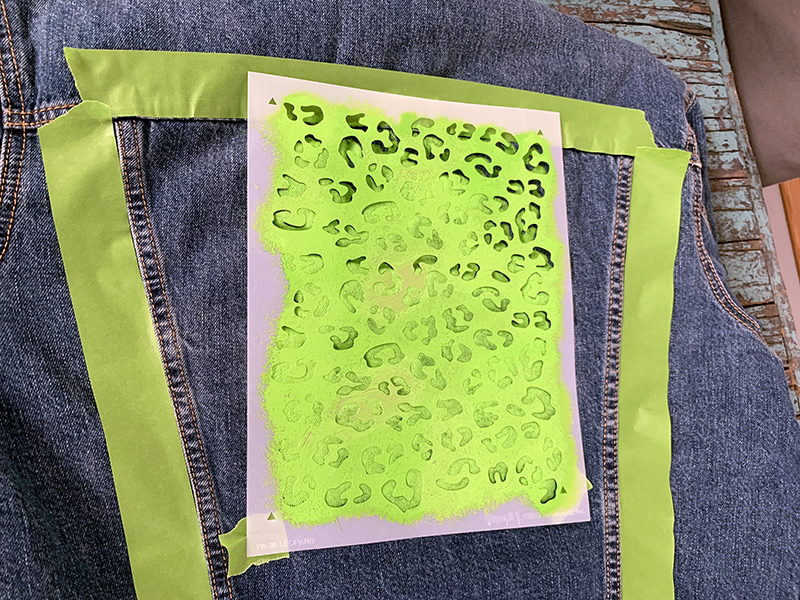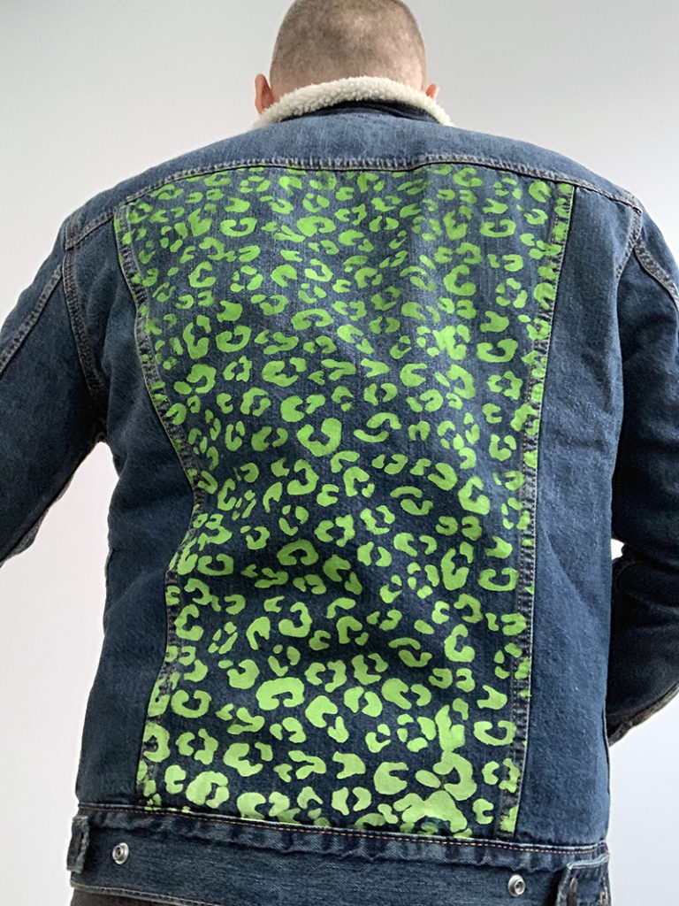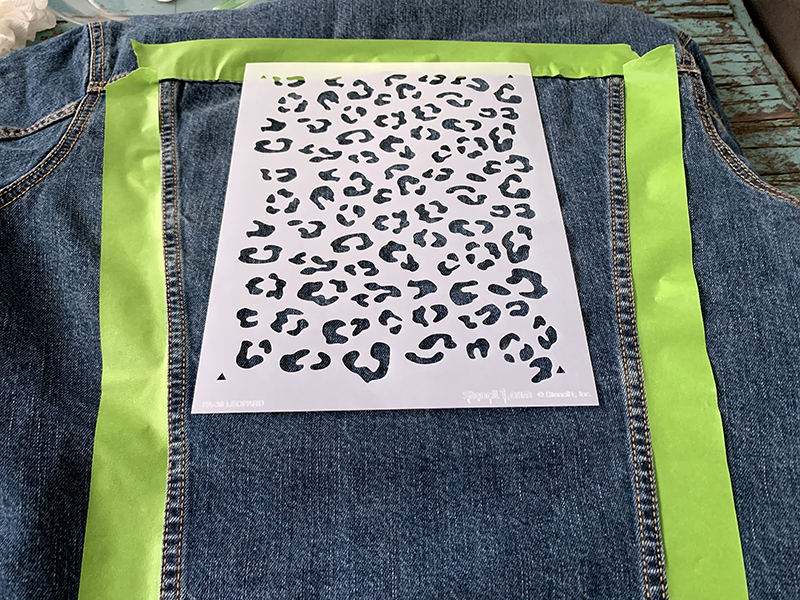 We used a Levi’s sherpa winter denim coat and the Leopard Repeat Pattern Stencil (8.5″x11″)