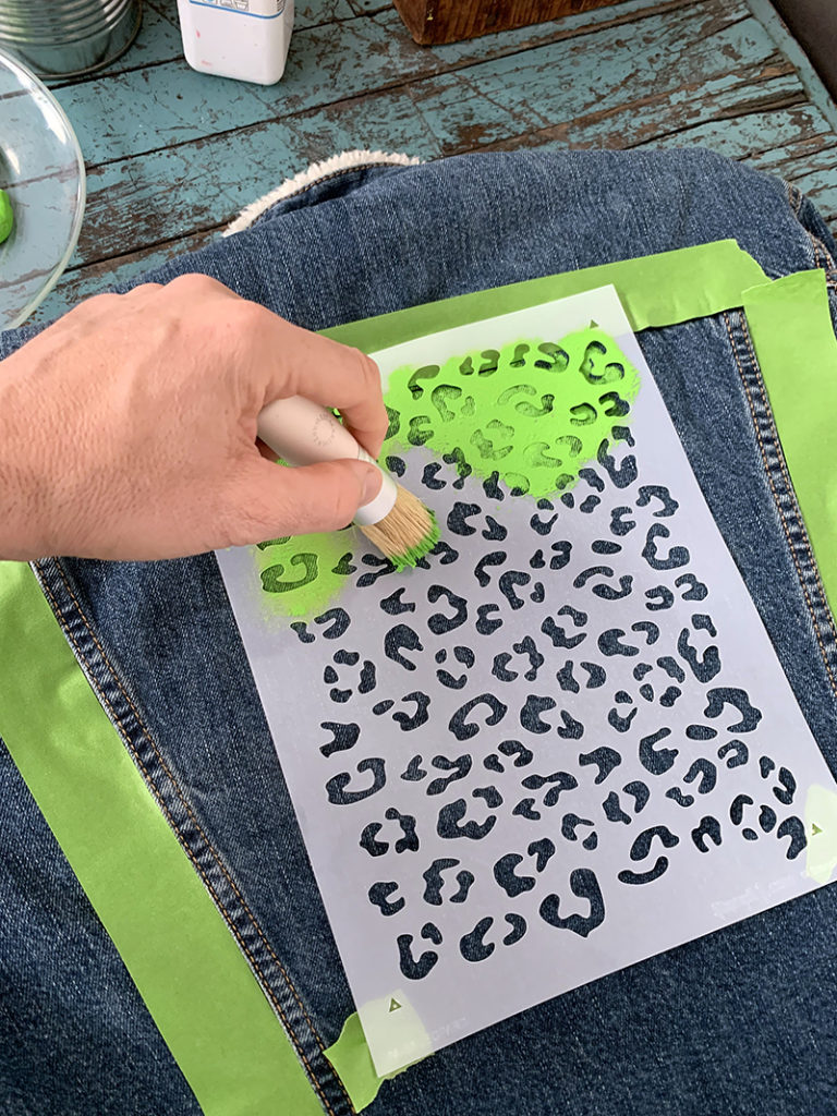 This great tutorial will show you how to turn any denim coat into a new style piece by using a leopard animal pattern stencil and bold colors.