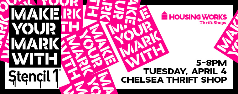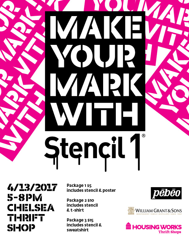 Stencil1 has had some very fun DIY events with major brands such as the Gap and Levi’s. We bring the stencils and paint, they supply the clothing, and it’s a party. Well, we have taken that formula and are applying it to charity. We are beyond thrilled to be working with Housing Works, a nonprofit organization providing housing, medical, prevention, support services for those living with HIV/AIDS.