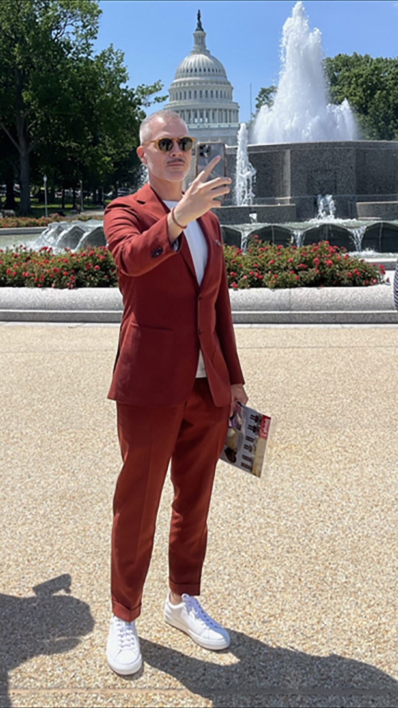 Then we headed over to the Senate Office Building. I wore my Suit Supply suit in rust with a white Buck Mason tee underneath and white sneakers. As I was crossing the street near the Capitol, a woman stopped her car to tell me from the driver seat how great my suit looked. Damn, DC sure is nice and friendly!