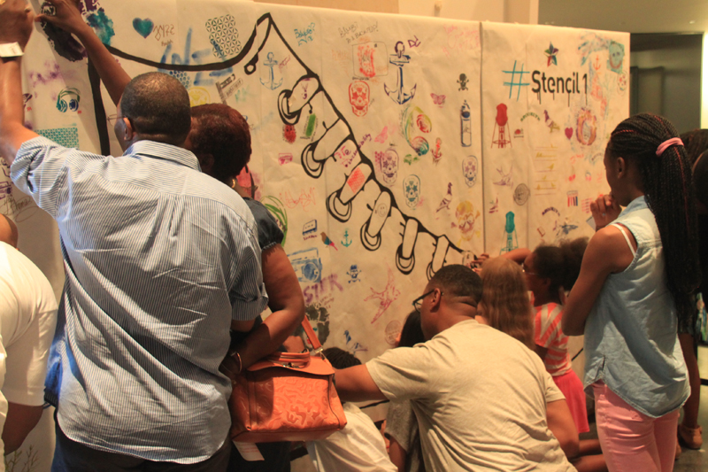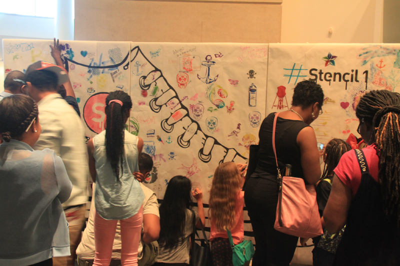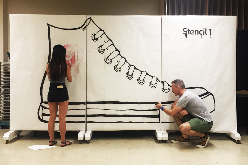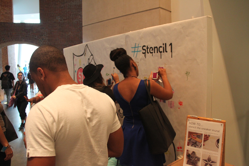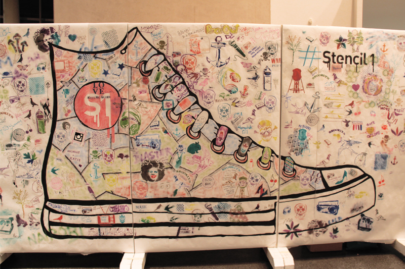 As soon as the clock hit 6:30 PM, people flooded to our stand, grabbed their favorite Stencil1 stencil, and picked up a color and brush. They picked a spot on the sneaker and started stenciling away! It was really awesome to see everyone’s creativity and what they came up with a variety stencils and colors. Artists even got to tag their name right next to their work!