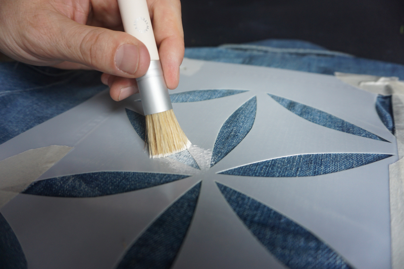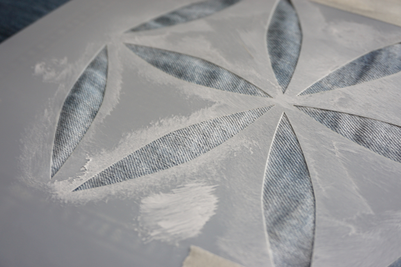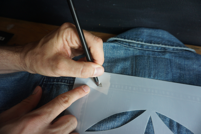 Feel free to repeat this process all over your jacket! Just align the triangles on the stencil with the tape registration marks you created.