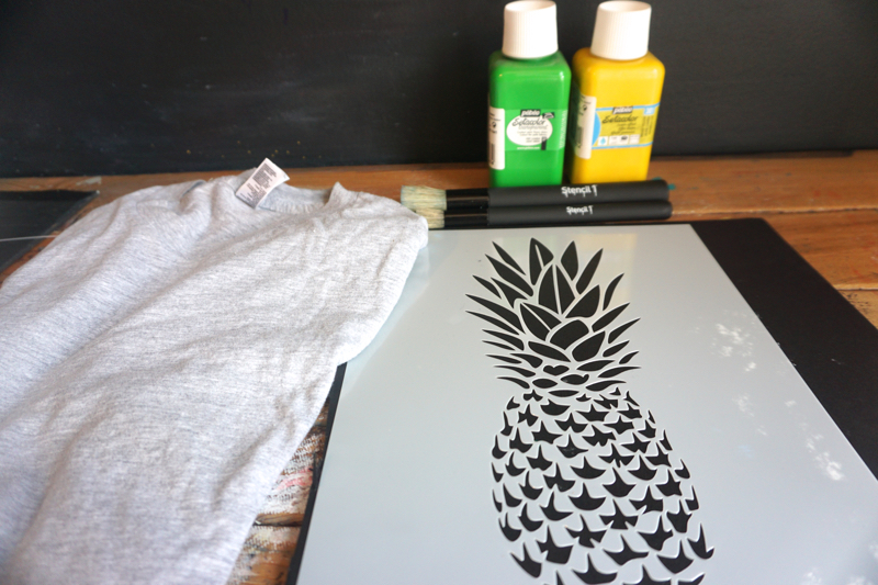 Things you will need: A shirt, paint and brushes, and the NEW Stencil1 Pineapple stencil.