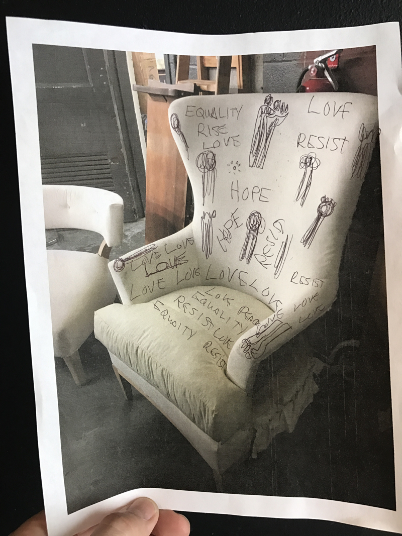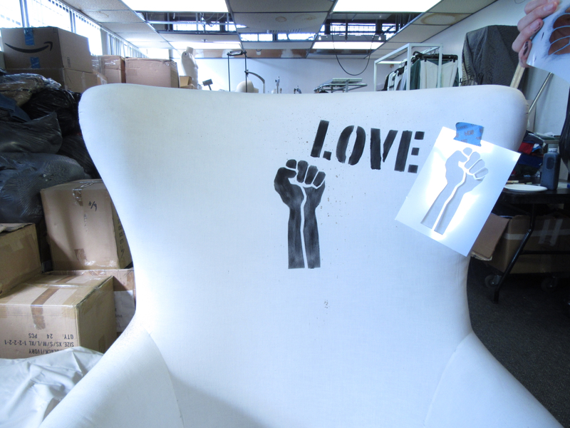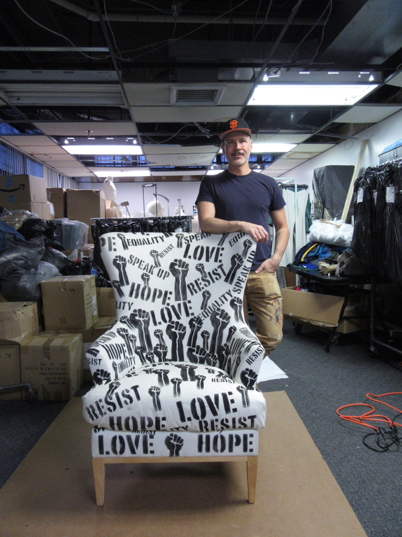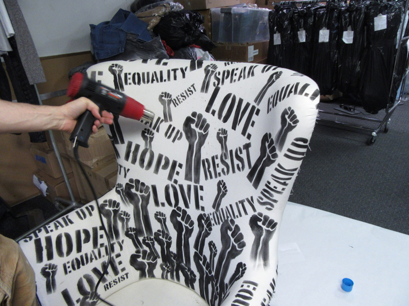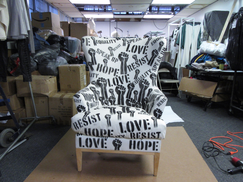 Stencil1’s very own, Ed Roth, customized this chair donated by William Grant & Sons with political messaging to make a real statement piece in your home. Activism has never looked so chic!