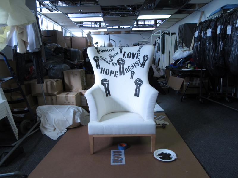 Are you ready to make your mark? If you can’t make it to the Make Your Mark with Stencil1, a charity event with Housing Works on April 14th at the Housing Works Chelsea Thrift Shop, you can still bid for the political chair online and give back to a great cause.