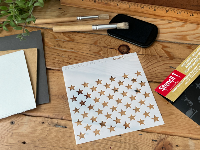 • The Stencil1® 50 Stars – Stencil 5.75″ x 6″ contains one 5.75″ x 6″ mylar stencil