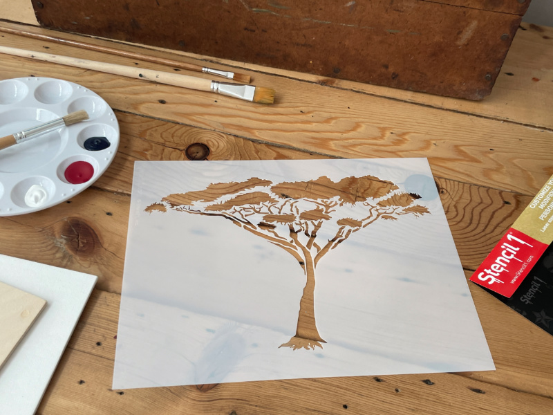 This Stencil1 Acacia Tree stencil is great for many surfaces. Layer with another Stencil1 stencil for a more complex design. Made of mylar, this stencil is washable, reusable and compatible with paints, inks, markers, pencils and more. Can be applied to a variety of materials, including wood, paper, fabric, metal, ceramic, concrete and glass. Show us how you create with Stencil1 by tagging #stencil1 for a chance to be featured on Stencil1.com.