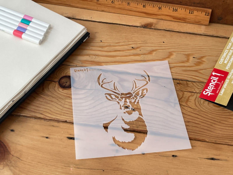 • The Stencil1® Antlered Deer – Stencil 5.75″ x 6″ contains one 5.75″ x 6″ mylar stencil