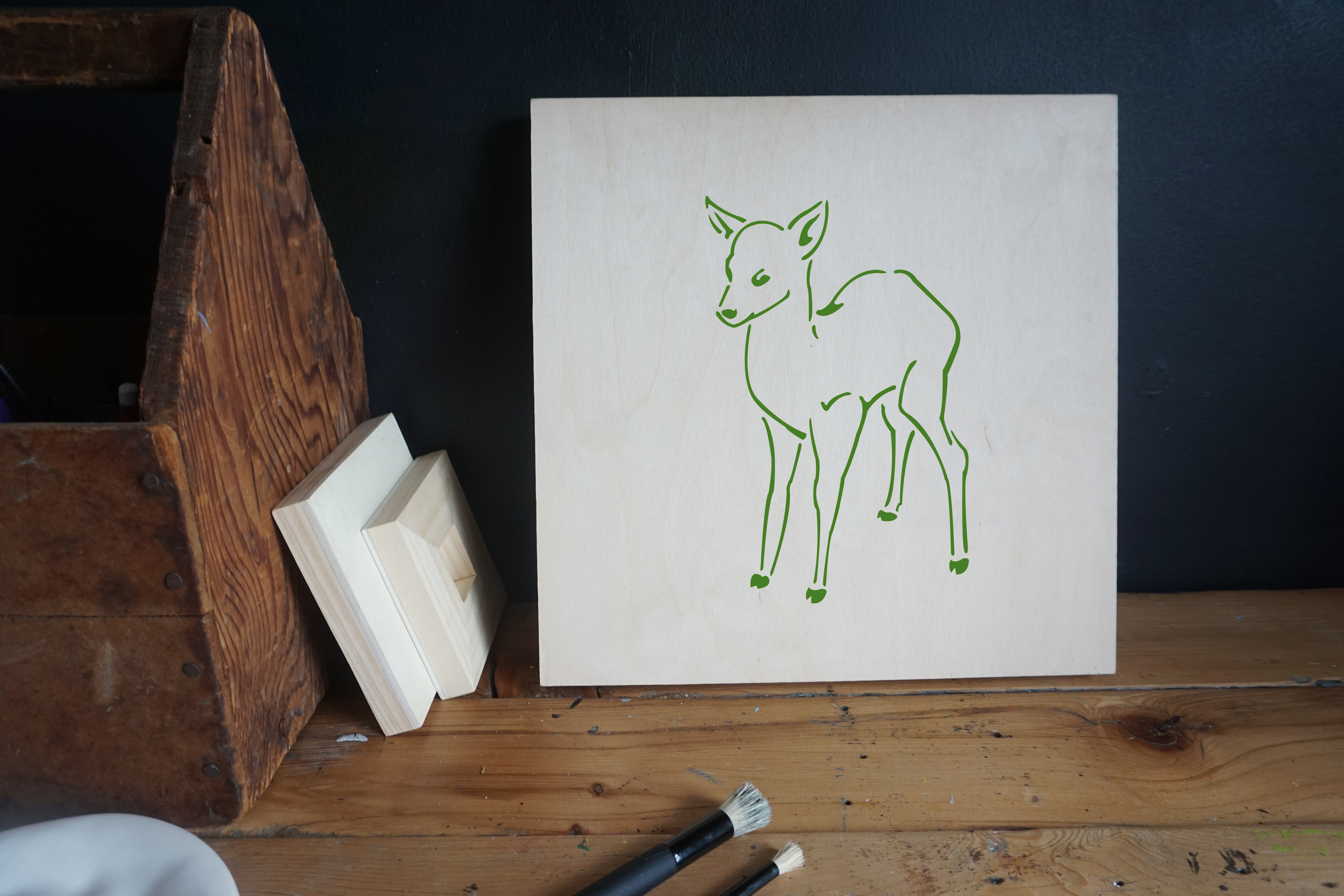 This Stencil1 Baby Deer stencil is great for many surfaces. Layer with another Stencil1 stencil for a more complex design. Made of mylar, this stencil is washable, reusable and compatible with paints, inks, markers, pencils and more. Can be applied to a variety of materials, including wood, paper, fabric, metal, ceramic, concrete and glass. Show us how you create with Stencil1 by tagging #stencil1 for a chance to be featured on Stencil1.com.