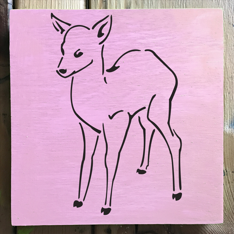 Get doe-eyed with the Stencil1 Baby Deer stencil. Great for smaller surfaces, like the pocket of a t-shirt, invitation or greeting card. Layer with another Stencil1 stencil for a more complex design. Made of mylar, this stencil is washable, reusable and compatible with paints, inks, markers, pencils and more. Can be applied to a variety of materials, including wood, paper, fabric, metal, ceramic, concrete and glass. Show us how you create with Stencil1 by tagging #stencil1 for a chance to be featured on Stencil1.com.