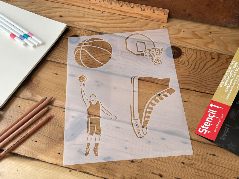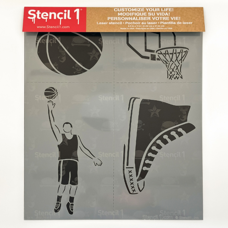 • The Stencil1® Basketball Multipack 4ct – Stencil 8.5″ x 11″ contains one 8.5″ x 11″ mylar sheet with four stencils