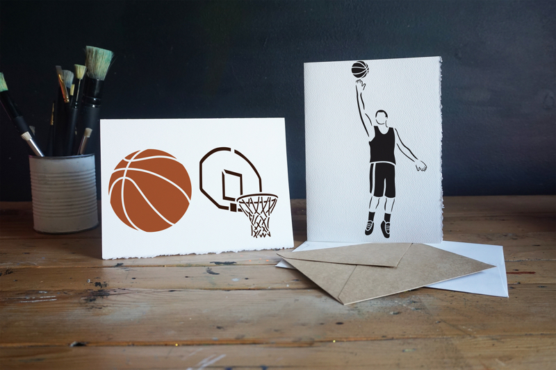 This Stencil1 4 Pack Basketball stencil gives you multiple stencils, cut on one sheet, for all your creative projects. Add these icons to your clothes or mixed-media projects, they are sure to be a slam dunk! Made of mylar, this stencil is washable, reusable and compatible with paints, inks, markers, pencils and more. Can be applied to a variety of materials, including wood, paper, fabric, metal, ceramic, concrete and glass. Show us how you create with Stencil1 by tagging #stencil1 for a chance to be featured on Stencil1.com.