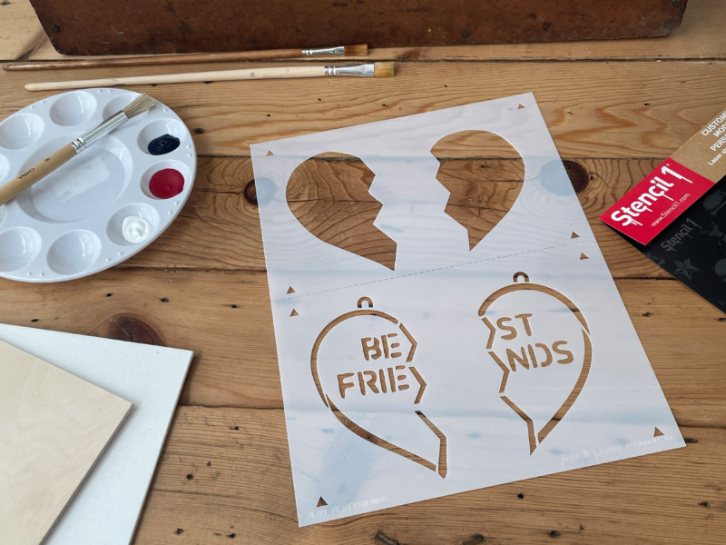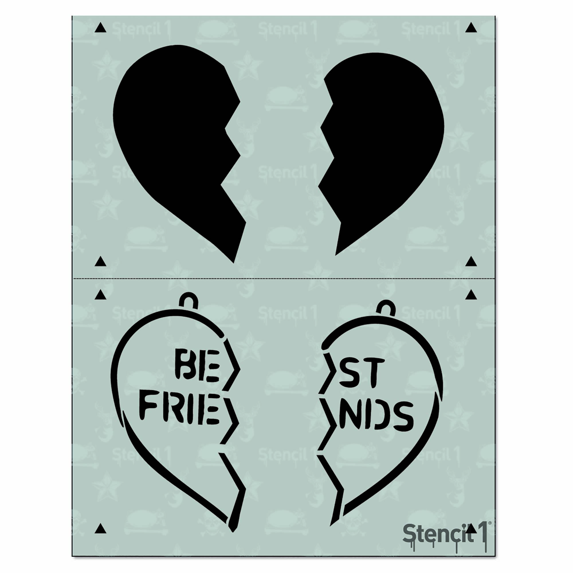 This Stencil1 Two-layer Best Friends Heart stencil is easy to use and adds depth to your creative projects. First paint the outline or silhouette shape, then paint the detailed layer over the first and you’re done! Create on-trend t-shirts, cards and artwork! Made of mylar, this stencil is washable, reusable and compatible with paints, inks, markers, pencils and more. Can be applied to a variety of materials, including wood, paper, fabric, metal, ceramic, concrete and glass. Show us how you create with Stencil1 by tagging #stencil1 for a chance to be featured on Stencil1.com.