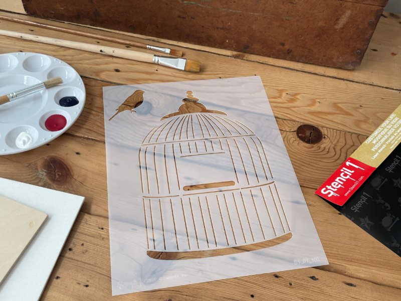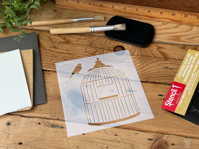 - The Stencil1® Bird Cage & Bird – Stencil 8.5″ x 11″ contains one 8.5″ x 11″ mylar stencil