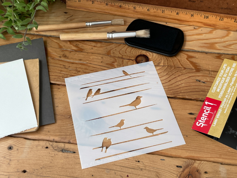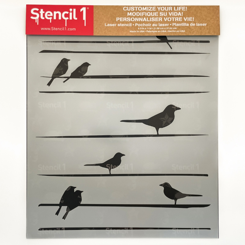 - The Stencil1® Birds on Straight Wires– Stencil 8.5″ x 11″ contains one 8.5″ x 11″ mylar stencil