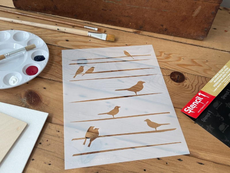 This Stencil1 Birds on Straight Wires stencil is great for many surfaces. Layer with another Stencil1 stencil for a more complex design. Made of mylar, this stencil is washable, reusable and compatible with paints, inks, markers, pencils and more. Can be applied to a variety of materials, including wood, paper, fabric, metal, ceramic, concrete and glass. Show us how you create with Stencil1 by tagging #stencil1 for a chance to be featured on Stencil1.com.